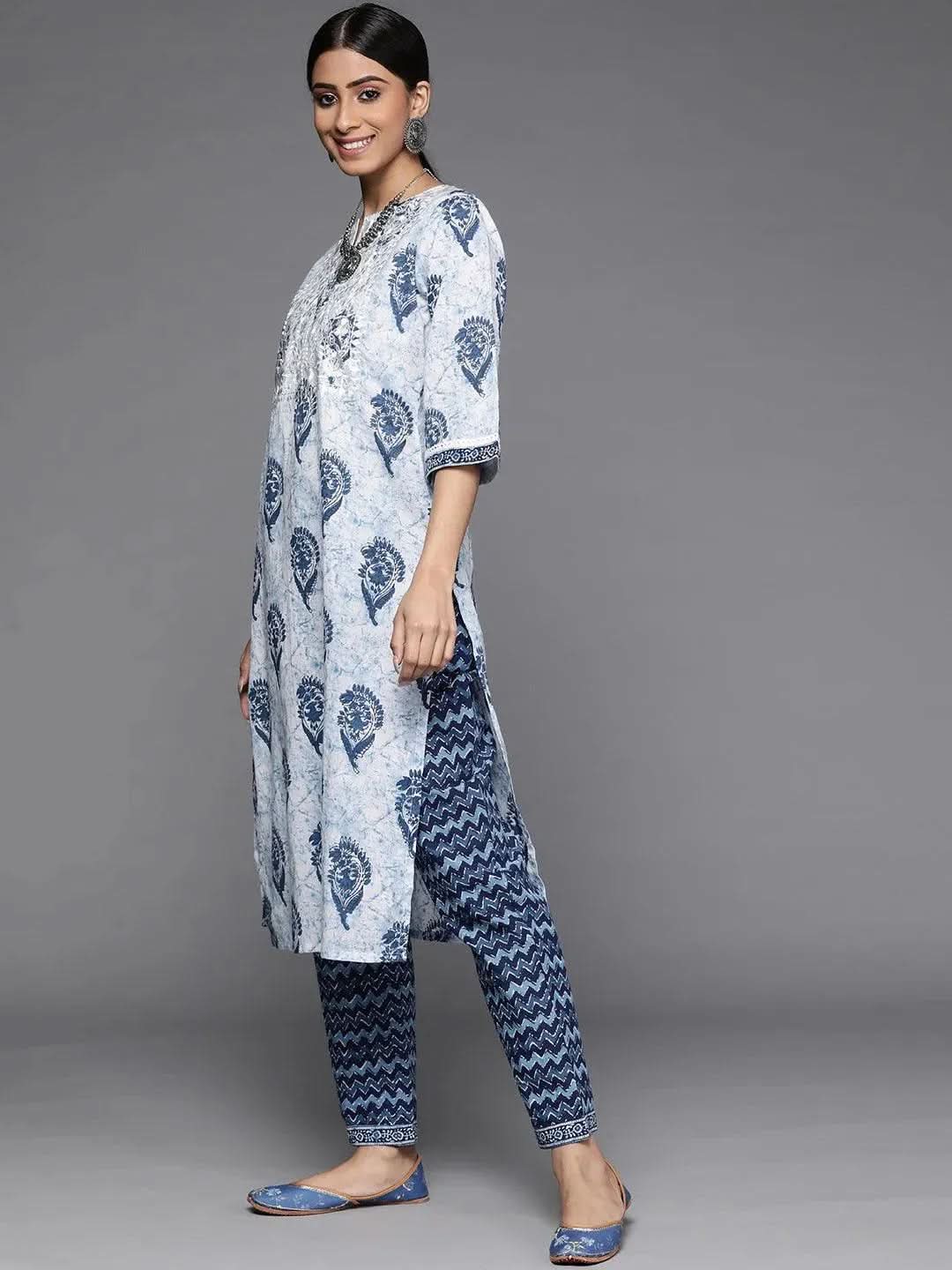 Our 3-piece white cotton suit set highlighted with a paisley floral print features a straight-fit kurta with a notched neckline, straight pants with a partially elasticated waistband and roomy pockets, and a dupatta in a chevron print. This style is perfect for work and beyond.