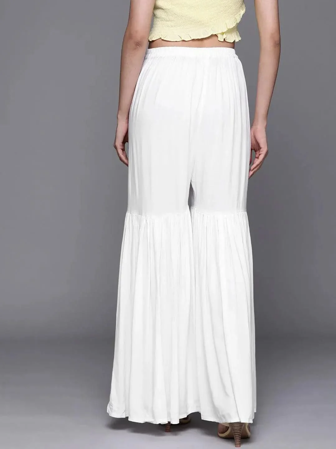 White Solid Rayon Sharara Pants