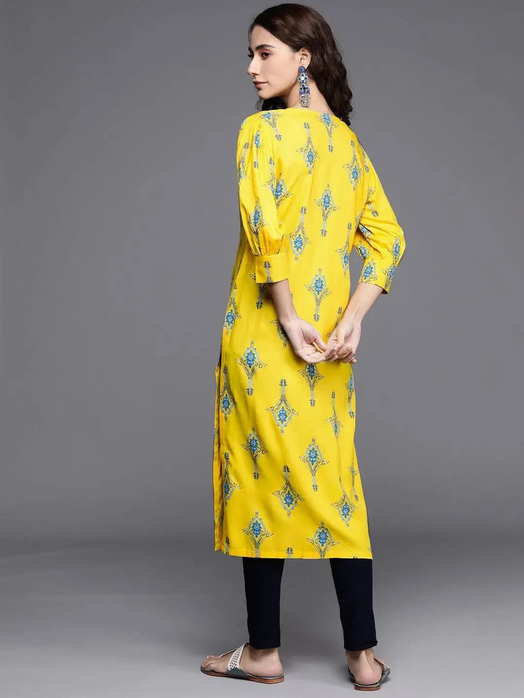 Yellow Printed Cotton Kurta